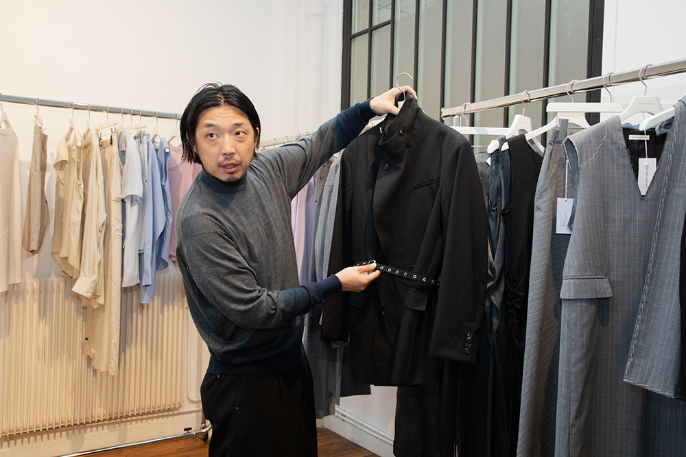 Ideally, the Asian market would be where we generate revenue, really see the numbers; in Japan, we’d maintain a steady presence; and in Europe, we’d limit our stockists to a select few of the very best. Something else I’m thinking about is how it’s so hot everywhere, including Japan. I’d like to continue experimenting with different materials and create beautifully tailored pieces from lighter materials.